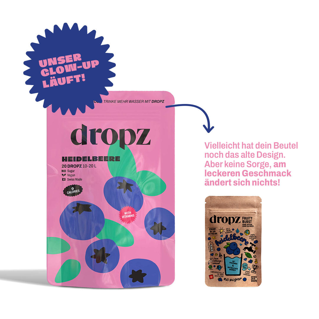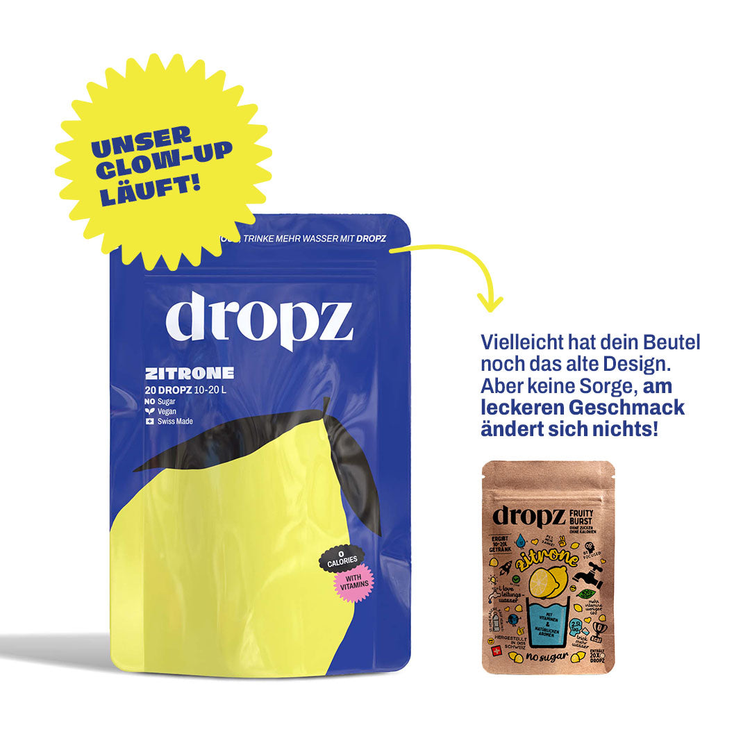 Ein Dropz reicht für 250–500 ml Wasser — je nachdem, wie intensiv du den Geschmack haben möchtest.